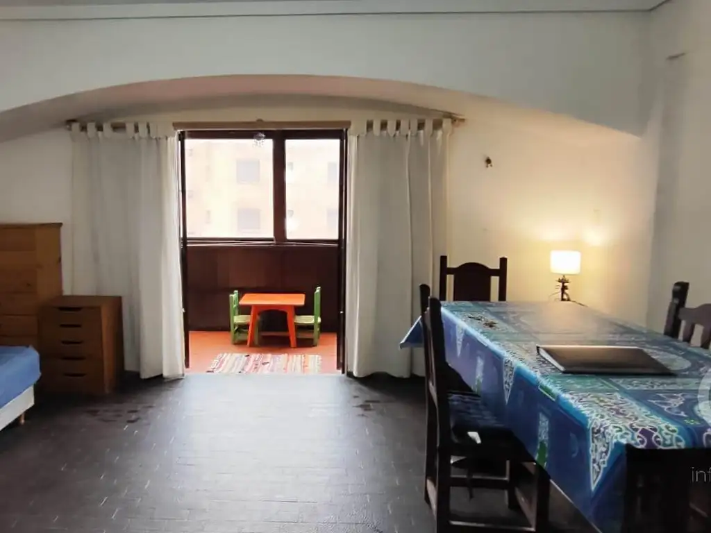 Departamento de dos ambientes: Cuenta con un dormitorio, baño, cocina a gas y muebles de bajo mesada y alacena y un luminoso living comedor con salida al balcón con reja y cortinas de blackout.