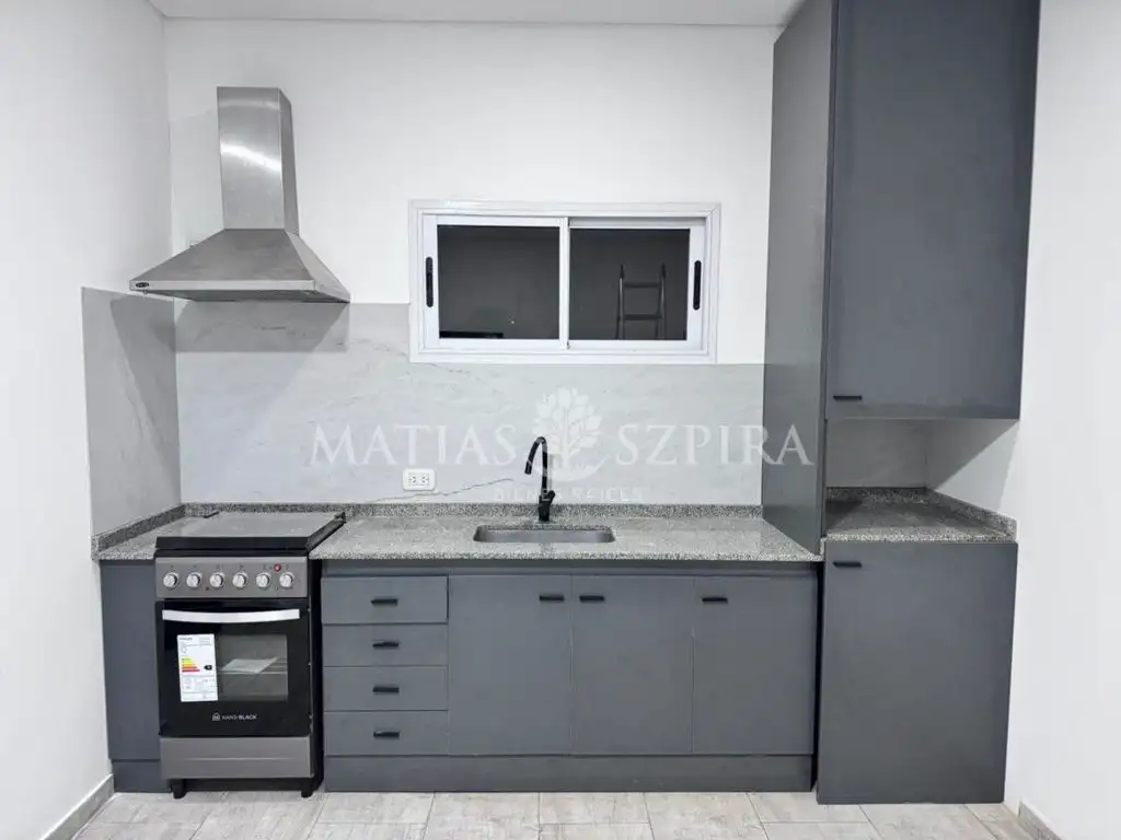 El departamento se encuentra en el primer piso por escalera con disposición al frente por pasillo lateral. Al ingresar accedemos a la cocina comedor diario integrados equipada con bajo mesada, horno eléctrico mas anafe doble, campana. También cuenta con espacio para conexión de lavarropas y termotanque cubierto con mobiliario.