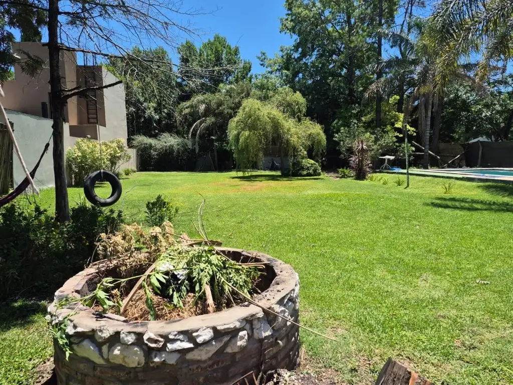 El exterior invita a desconectar: un jardín rodeado de árboles añosos, de gran altura.