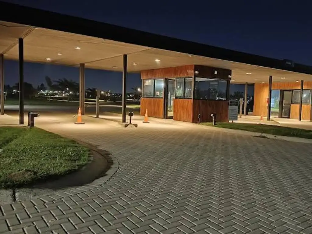 Acceso y Seguridad: Calles internas asfaltadas, pilares de servicios y edificio de acceso.