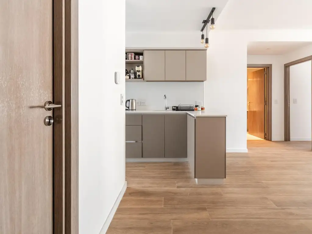 Cuenta con un amplio living comedor con salida a balcón aterrazado corrido, generando un espacio cómodo y muy disfrutable. La cocina moderna se encuentra integrada al living, quedando un gran ambiente integrado.