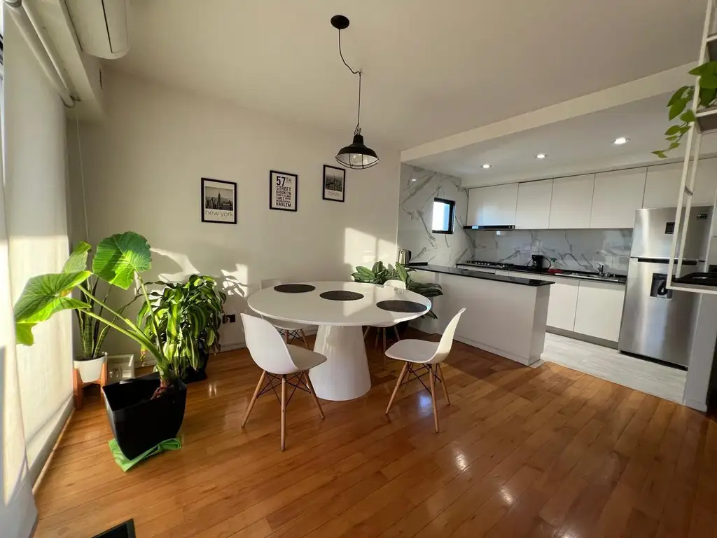 Al ingresar a la unidad nos recibe un amplio living comedor, con cocina semi-integrada, diseñado para aprovechar al máximo la luz natural. El espacio es cómodo, luminoso y con excelente circulación, destacándose por su salida directa a un espectacular balcón aterrazado de 40 m2, ideal para reuniones, disfrutar del aire libre o simplemente relajarse con una vista abierta desde el piso 12.
