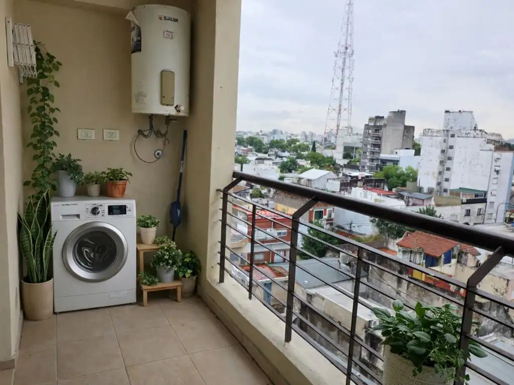 Cuenta con balcón de 5 m2 y espacio para lavarropas. Amplia y funcional cocina integrada con cocina a GAS, baño completo con bañera y luz natural. Pequeño placard empotrado al ingreso y otro móvil.