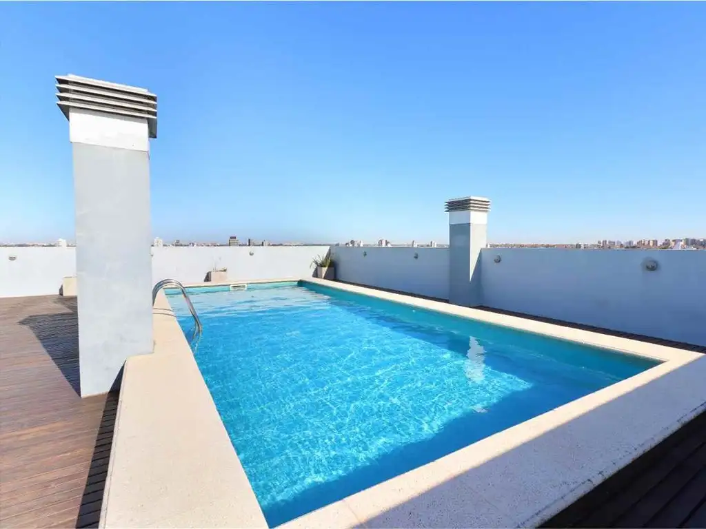 El edificio ofrece seguridad 24 hs, Encargado, laundry, amplia pileta con deck y SUM totalmente equipado en la terraza, con vista abierta al río.