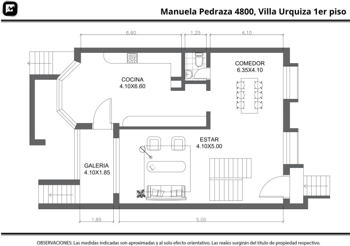 La propiedad cuenta además con jardín, quincho y pileta de 30m2 (3.8x7.9), con un pulmón de manzana abierto.