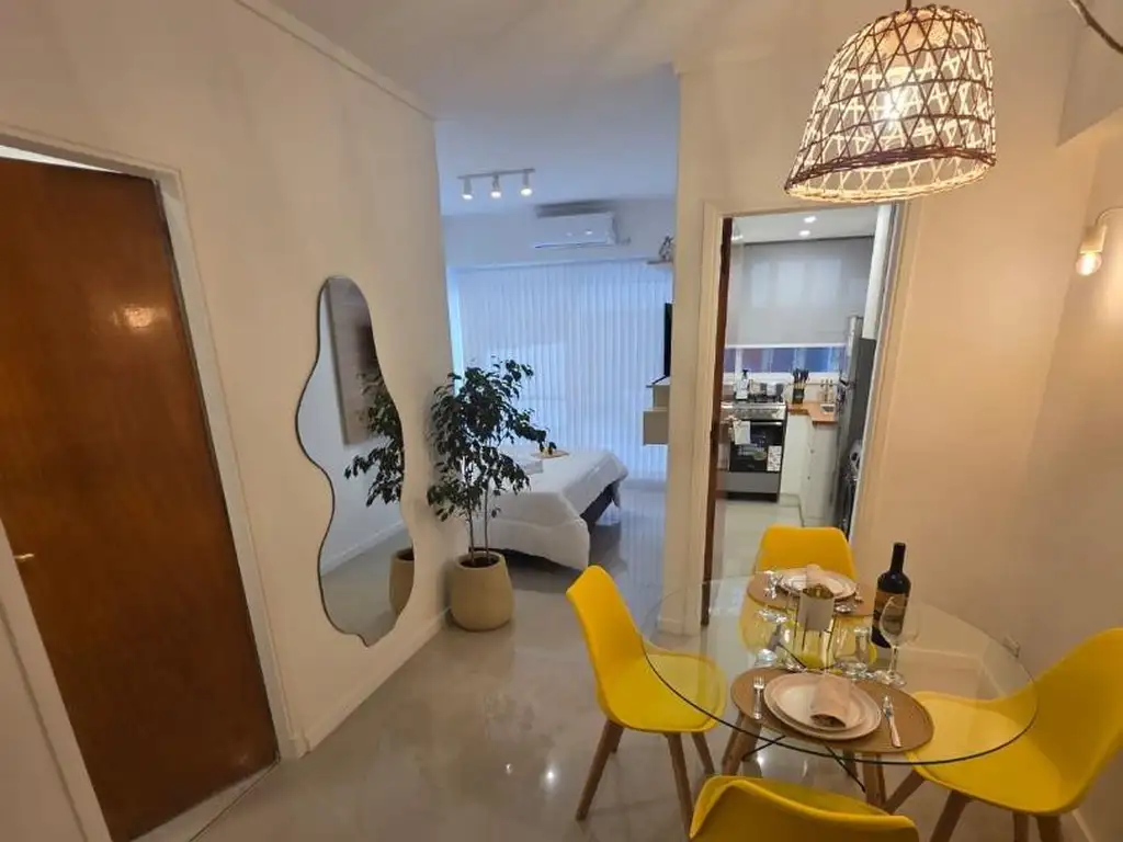 Cuenta con un amplio ambiente dividido, muy luminoso gracias a su ventanal de piso a techo, y salida a un gran patio con excelente entrada de luz natural. La unidad se encuentra totalmente refaccionada (incluyendo cañerías y obra de gas en el edificio) y equipada a nuevo, lista para habitar o alquilar.