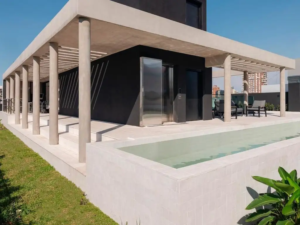 El edificio ofrece en el piso 9 un rooftop con piscina, solárium, parrilla y gimnasio, brindando espacios de uso común orientados al confort.