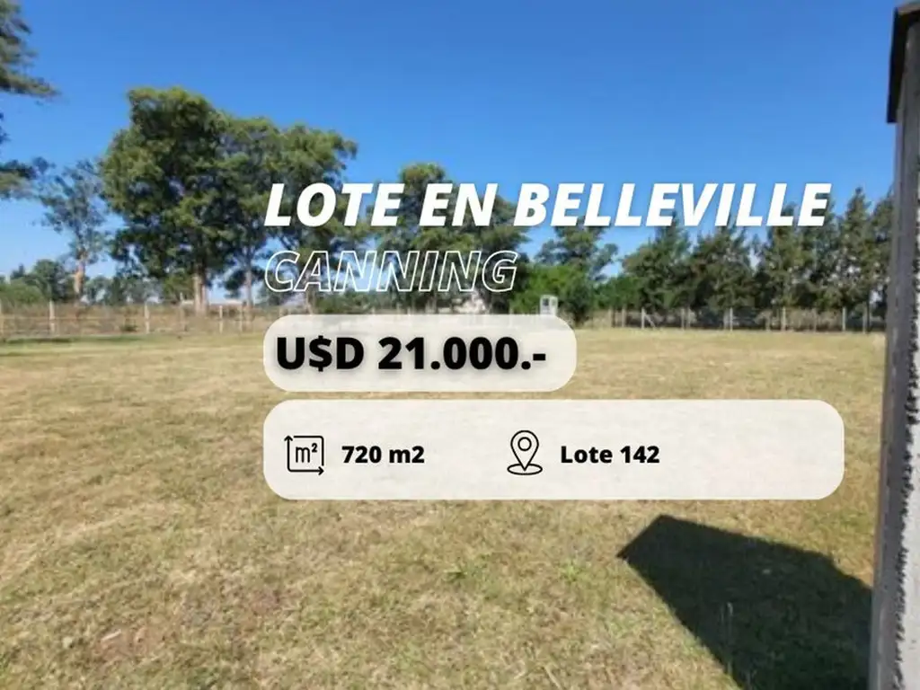 Lote N° 142 de 720 m² en venta en el Barrio Belleville, Canning, Esteban Echeverria.
