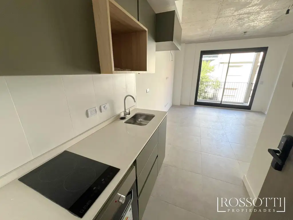 Unidad 1002: Monoambiente con balcón al frente (27.40m2) - Cerradura inteligente digital - Piso de Porcelanato - Cocina completa con muebles de Melamina, mesada de granito blanco, Horno eléctrico (Clever), Anafe eléctrico vitrocerámico (Clever) - Griferías Fv - Sanitarios Roca - Carpintería de Aluminio con DVH (Doble Vidriado Hermético) - Baño completo, con revestiemnto cerámico - Pre instalación de aire acondicionado.