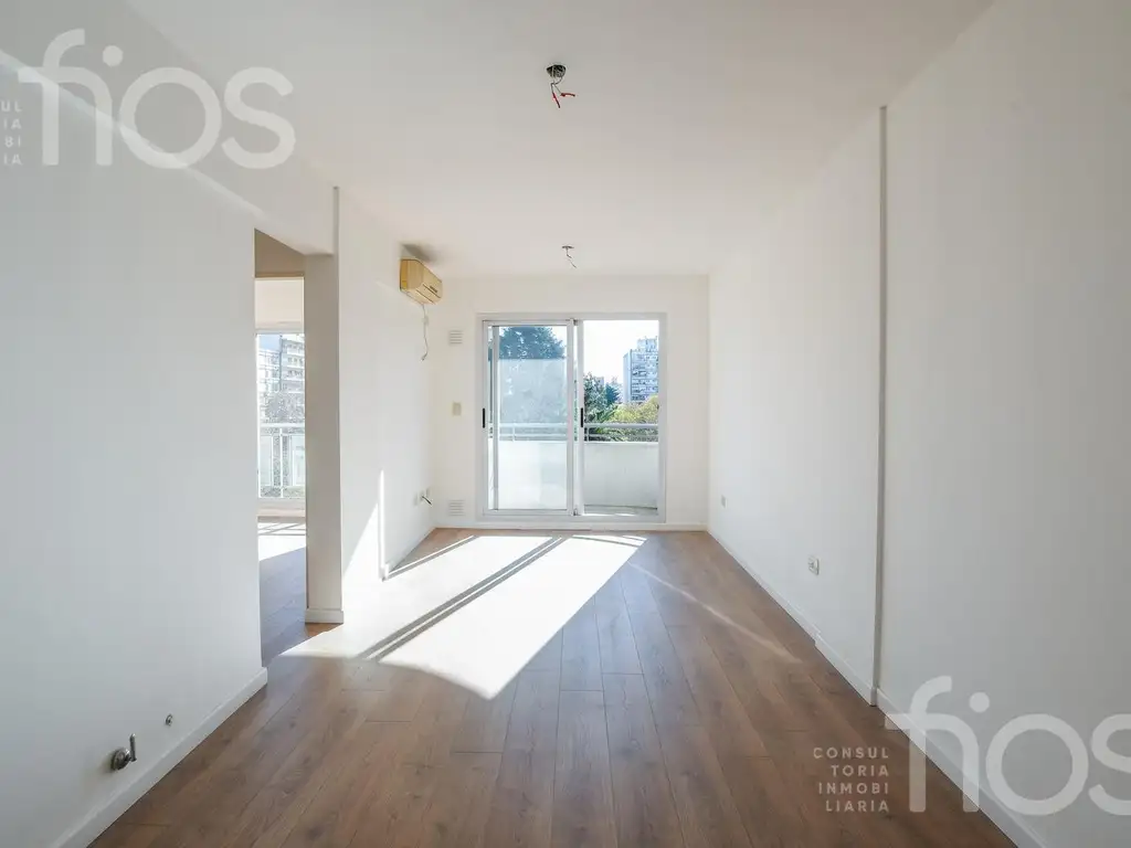 La unidad se sitúa en un séptimo piso al frente con orientación norte, lo que garantiza luminosidad natural durante gran parte del día y una ventilación cruzada muy eficiente. El ingreso conduce a un estar comedor funcional y confortable, con salida directa a un balcón corrido que ofrece vistas abiertas hacia Plaza López, generando una sensación de amplitud y contacto con el entorno. La cocina independiente se encuentra equipada con mobiliario completo, alacenas, bajo mesada y espacio previsto para lavarropas, además de ventilación natural.