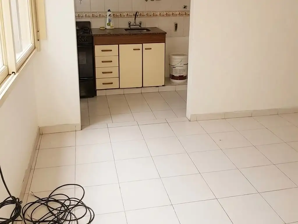 Al ingresar, nos recibe un living comedor hacia la derecha, un espacio luminoso y fácil de sectorizar. La cocina es independiente (sin puerta, pero claramente delimitada del área social), equipada con mobiliario completo, cocina a gas y espacio para heladera.