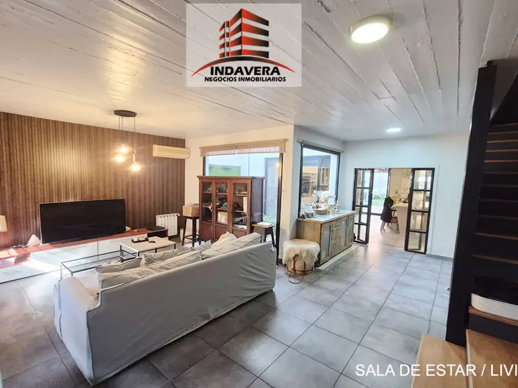 PLANTA BAJA: ENTRADA INDEPENDIENTE. 2 COCHERAS (1 CUBIERTA) CON PORTON AUTOMATIZADO. ENTRADA A GRAN SALA DE ESTAR / LIVING CON VISTA A JARDIN DE INVIERNO. HERMOSA ESCALERA DE ACCESO A PLANTA SUPERIOR. TOILETE DE RECEPCIÓN. GRAN COCINA CON ISLA Y COMEDOR DIARIO EQUIPADA CON MUEBLES ALTOS Y BAJO MESADA, ESPACIO PARA LAVAVAJILLA. ANAFE Y HORNO EMPOTRADO A GAS. ESPACIO PARA HELADERA Y ESCOBERO. SALIDA A QUINCHO CON PARRILLA. ESPACIO PARA LAVADERO CON MESADA Y MUEBLES BAJOS. CON TECHO REBATIBLE. SALIDA A PATIO DESCUBIERTO. PLAYROOM (6.5*3m APROX).