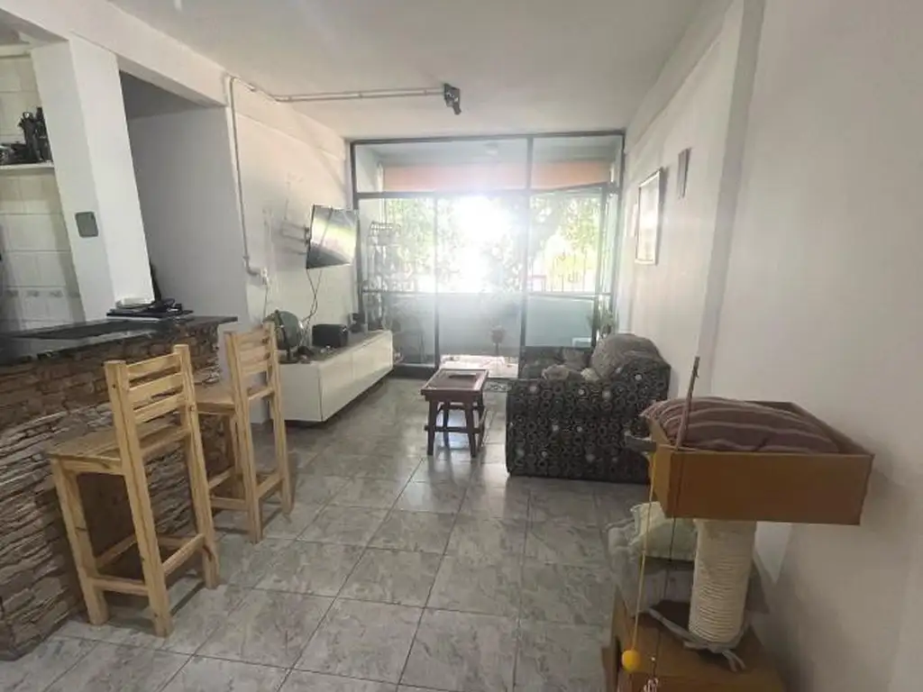 Distribución funcional y cómoda: Living comedor con cocina integrada; Baño y cocina reciclado.