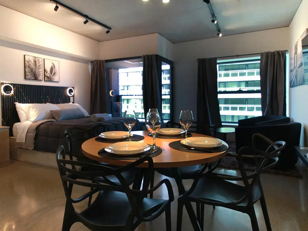 Unidad de 1 ambiente en alquiler dentro de Alma Rentals Huergo, uno de los desarrollos más modernos de la zona, ideal para quienes buscan confort, diseño y servicios tipo hotel.