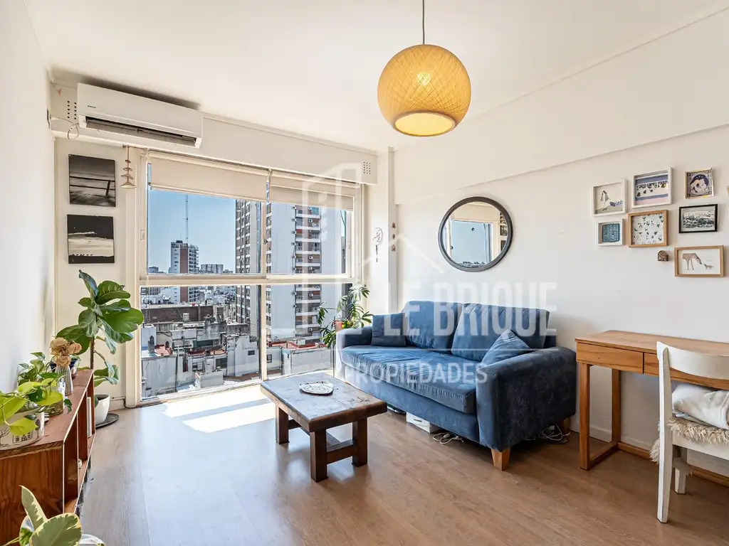 Living comedor con gran ventanal y vista abierta, aire acondicionado y pisos en excelente estado. Cocina independiente con espacio para heladera, conexión para lavarropa, mesada, bajo mesada y alacenas (Cambiados recientemente)