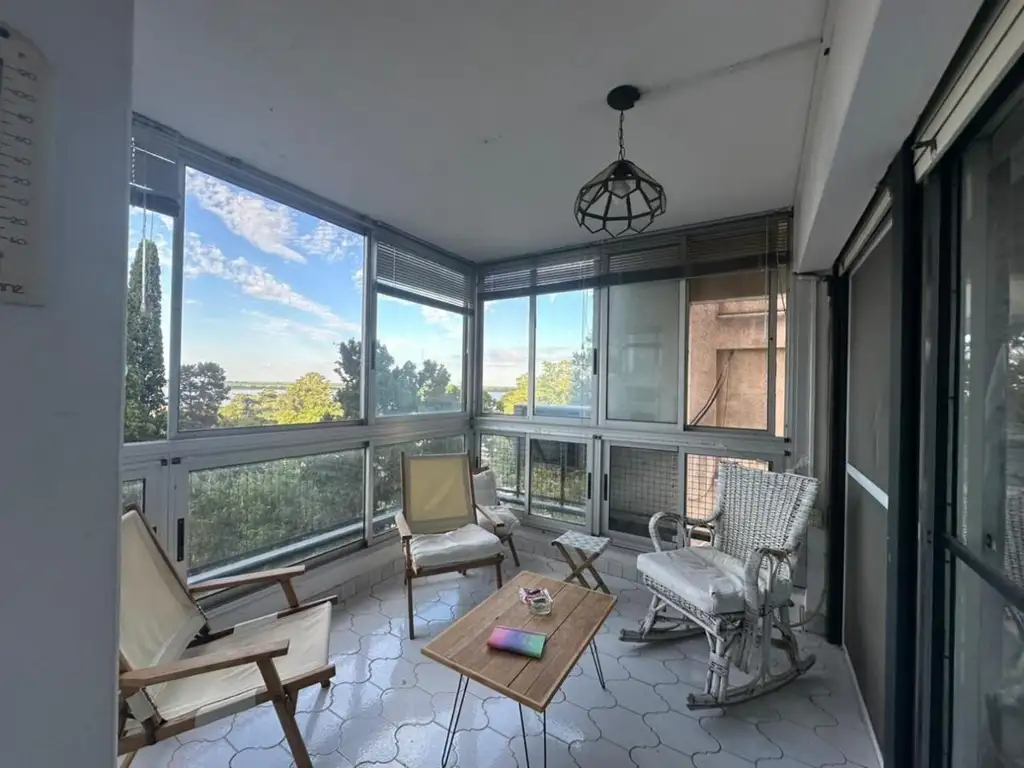 Desde el living-comedor se accede a los dormitorios, uno con salida al balcón, piso de madera y placard completo.