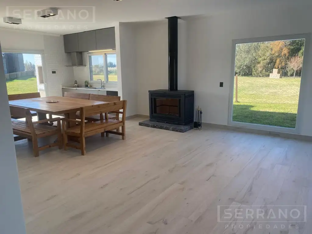 Cuenta con 1 habitación en suite con vestidor y dos habitaciones que comparten un baño. Cocina integrada con espacio para lavavajillas, living comedor con salamandra, lavadero y deposito, total 170 Mts. Galería con parrilla . Cochera cubierta para 2 autos .