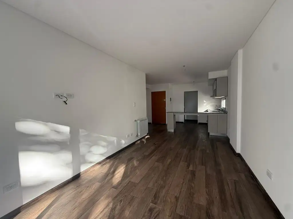 Departamento: La unidad cuenta con un amplio y luminoso living comedor, con salida a un balcón aterrazado al frente que garantiza excelente ventilación y luz natural. Ubicado en un segundo piso al frente, ofrece una agradable vista abierta y muy buena exposición. La cocina se presenta semi integrada, equipada con mobiliario completo de diseño moderno, mesada de granito y barra desayunadora que vincula de manera funcional ambos espacios. El dormitorio es de generosas dimensiones, con placard de puertas corredizas y muy buen ingreso de luz natural. Baño completo con bañera y toallero calefaccionado. La propiedad cuenta con calefacción por radiadores mediante caldera dual, brindando confort en todos sus ambientes.