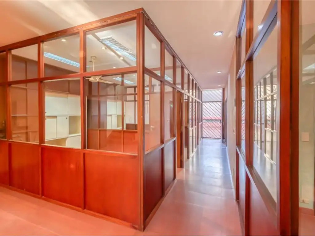 Desarrollada en planta baja al frente. Al ingreso: sala de recepción, 3 oficinas con divisiones de vidrio y madera; cocina y baño; mas una oficina privada a la que se puede acceder también desde la cochera, con baño privado y lugar de guardado.
