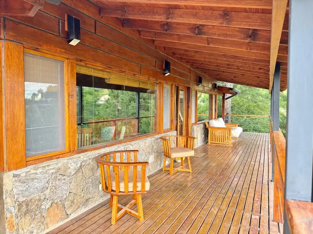 El corazón de la vivienda es su amplio living-comedor, con grandes ventanales que enmarcan increíbles vistas abiertas al paisaje serrano, permitiendo el ingreso de abundante luz natural durante todo el día. Este espacio se complementa con un hogar a leña y salamandra, ideales para disfrutar de un ambiente cálido y acogedor en todas las estaciones.