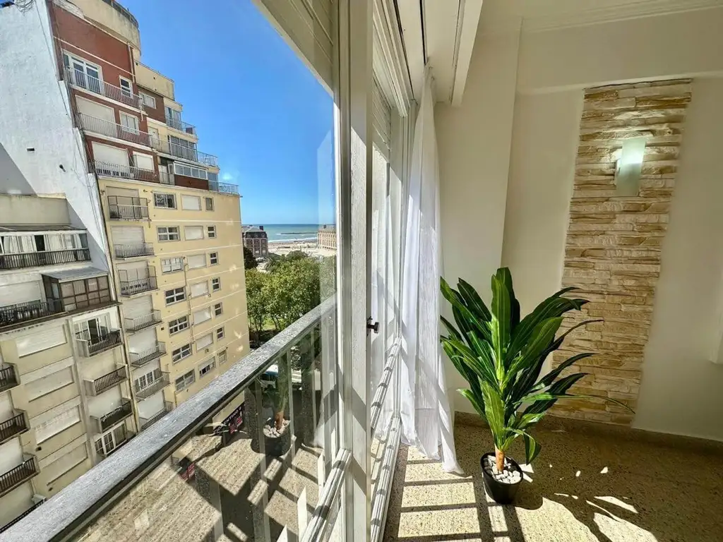 Dormitorio principal con placard y vista lateral al mar y a Plaza Colón. También cuenta con TV.