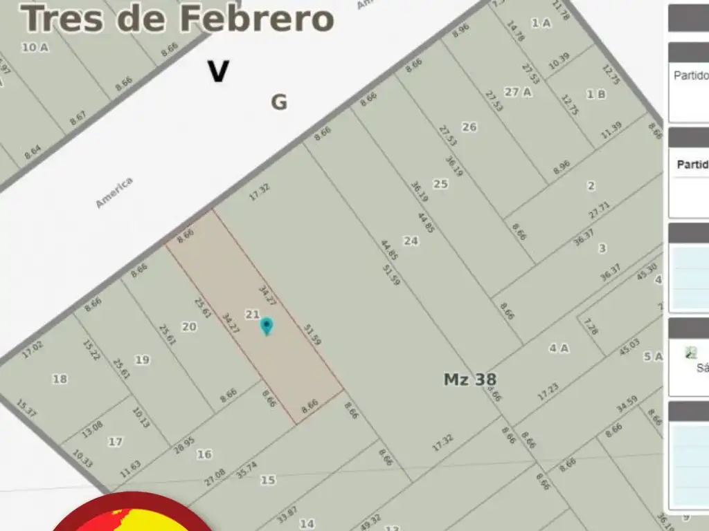 Venta de Lote en Sáenz Peña, Tres de Febrero