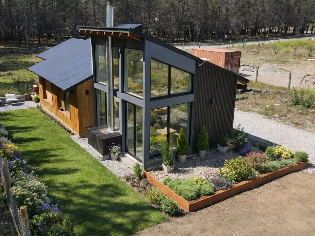 La casa dispone de dos dormitorios cómodos. Además, incluye un amplio lavadero con caldera dual y un estacionamiento techado que ofrece versatilidad: puede transformarse fácilmente en quincho o taller cerrándolo con una lona durante el invierno. La calefacción se resuelve mediante losa radiante, sectorizada con dos termostatos independientes para regular por separado los dormitorios y las áreas sociales, asegurando un consumo eficiente y programadas a traves del celular. Hogar tromen en el living para noches romanticas.