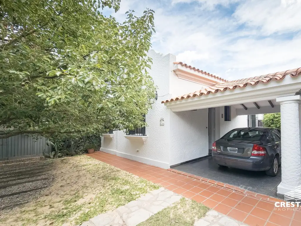 Desarrollada en una sola planta sobre un amplio lote, esta propiedad se destaca por su impronta colonial, excelente calidad constructiva y detalles originales en muy buen estado de conservación. Al ingreso, un portón da paso a un jardín delantero con vegetación consolidada y galería con techo a dos aguas de tejas, con espacio para un vehículo. En el interior se dispone un espacio de recepción y estar con orientación este, muy luminoso, con aberturas, pisos, zócalos y molduras originales de madera, además de un comedor independiente con techos de gran altura. La cocina es independiente, con comedor diario, amplias mesadas, bajo mesadas y una isla central tipo mesa de pinotea, conservando aberturas originales de hierro. En el sector íntimo se desarrollan dos dormitorios secundarios con pisos de pinotea y placares empotrados, asistidos por un baño completo, y un dormitorio principal en suite. La propiedad incorpora además un espacio de escritorio, patio interno con lavadero anexado y circulaciones con mosaicos graníticos y revestimientos en machimbre blanco. Cuenta con calefacción por radiadores, caldera original y agua caliente por termotanque de alta recuperación. En el fondo se destaca un jardín de invierno con hogar a leña, pisos de madera tipo adoquín y cielorrasos con vigas a la vista, conectado a un amplio espacio verde con quincho, pileta tipo tanque australiano y pisos exteriores de laja, conformando un entorno arbolado y privado.