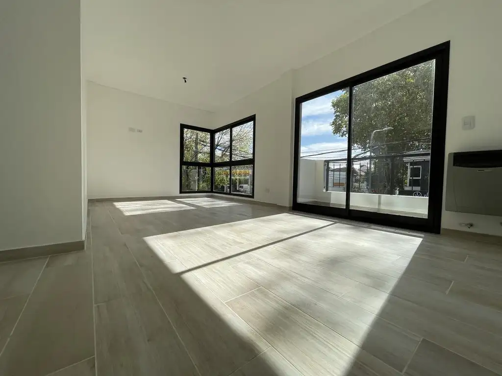 Estar-Comedor con balcón corrido, muy luminoso; 2 dormitorios (1 con placard completo); 1 baño completo con bañera y duchador; cocina independiente con espacio bajo mesada para lavarropas. Estufa tiro balanceado en Living y Aire acondicionado Split Frío Calor en el estar-comedor y en los dormitorios.