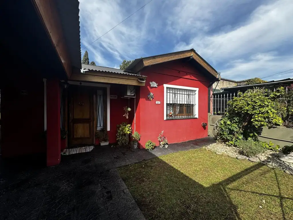 La casa, de una sola planta, se ubica en un terreno de 8,66 x 24 metros, con una superficie construida de 72 m² en un terreno total de 258 m². Al ingresar, se encuentra un amplio living independiente que da a un patio frontal. A la derecha se halla la habitación principal, con vista al frente de la propiedad, equipada con placard empotrado y aire acondicionado.