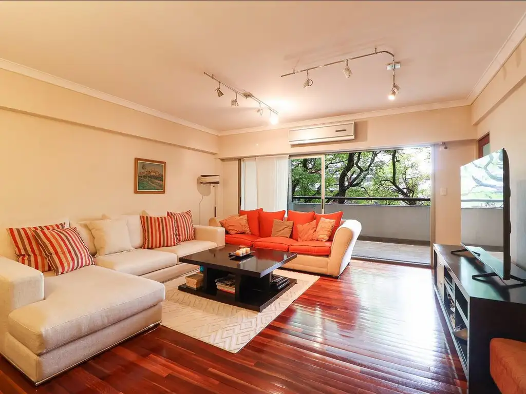 El ingreso se realiza por palier privado, con acceso directo al living comedor y la cocina, ambas puertas blindadas Pentagono El amplio living con salida a un balcón frontal permite la instalación de una mesa para diez personas, aprovechando la vista a la calle. La cocina y el lavadero presentan espacios generosos, complementados por una dependencia de servicio completamente equipada.