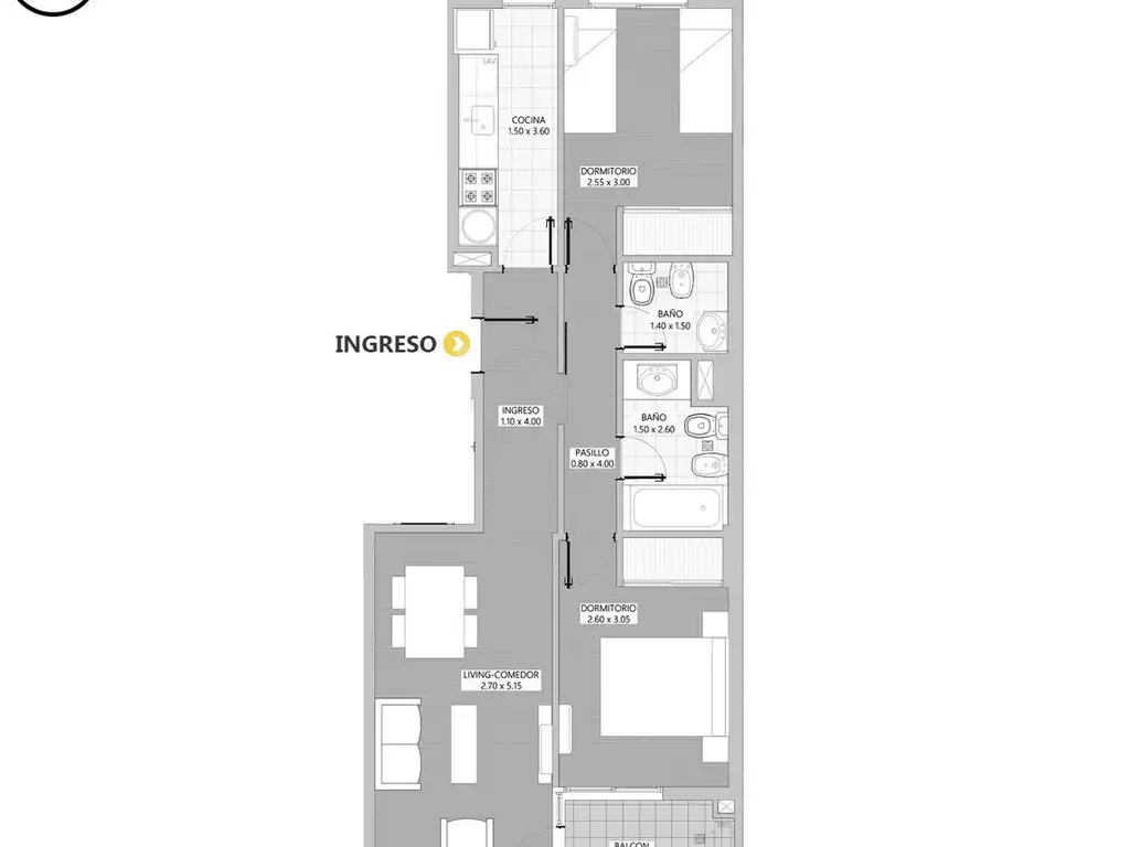 Unidad al frente con ventilación cruzada y orientación OesteEste, que garantiza iluminación y circulación de aire natural. Ingreso a estar comedor al frente. Cocina separada completamente equipada con alacena y bajo mesada. En el sector íntimo se desarrollan dos dormitorios de buenas dimensiones, asistidos por un baño completo y un toilette de recepción. La habitación principal cuenta con un espacioso balcón terraza al frente. Distribución eficiente y moderna, ideal tanto para vivienda como para inversión.