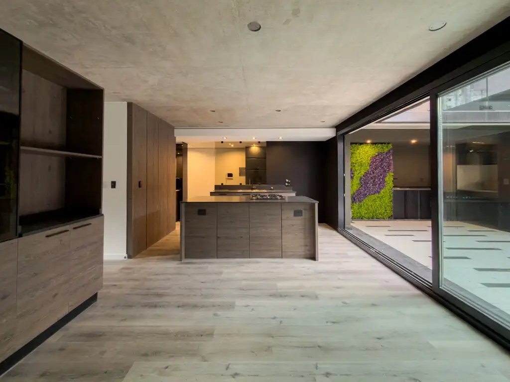 La unidad se encuentra en el 2° piso y ofrece ambientes amplios y luminosos. Al ingresar, nos encontramos con un gran estar-comedor con cocina integrada y una isla central que crean un espacio moderno y sofisticado. Desde la cocina se accede al patio con parrillero exclusivo muy amplio con lavadero incorporado Living al frente con ventanales corridos que dan acceso a un balcón al frente. En la zona de dormitorios se encuentra un dormitorio amplio con placares incluidos y acceso a un baño completo. Dormitorio principal en suite con vestidor y acceso al balcón con vista al frente.