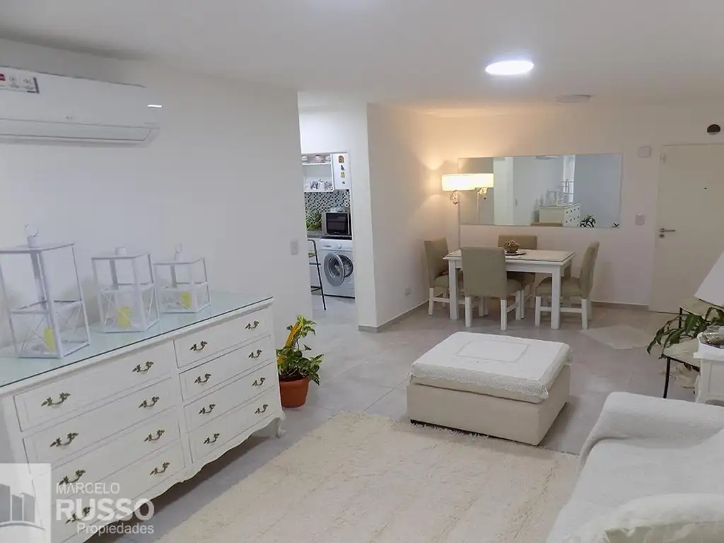 Living Comedor piso cerámico c/ balcón corrido, Cocina separada c/ alacenas y conexiones para lavarropas, Baño completo c/ bañera, 1 Dormitorio c/ Baño en Suite, placard con interiores y Sector de Escritorio, 1 Dormitorio piso cerámico c/ placard con interiores.