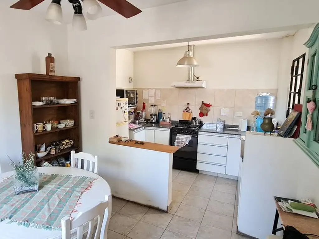 Acogedora cocina - comedor. Cocina de 3 m x 1,95 m con sobre y bajo mesada. Comedor de 3 m x 2,75 m con estufa de tiro balanceado y ventilador de techo.