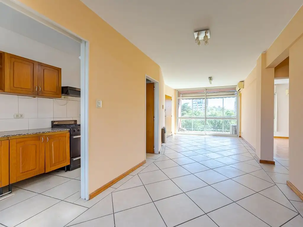 La unidad se ubica en un tercer piso al frente. Posee el sector de living comedor, con la cocina parcialmente integrada y sector de lavadero independiente. El balcón al frente es de generosas dimensiones, para poder disfrutar de la vista a la plaza. Cuenta con dos habitaciones con placares y baño completo con bañera.