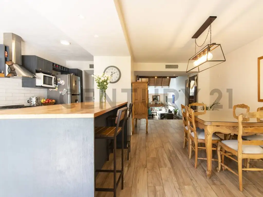 En Planta Baja nos encontramos con: Garaje cubierto para dos autos (posibilidad de guardar otros dos al descubiertos), cocina integrada al comedor diario, separado por isla desayunadora, living en desnivel con estufa hogar tipo Tromen, escritorio, toilette, quincho con parrilla patio con verde.