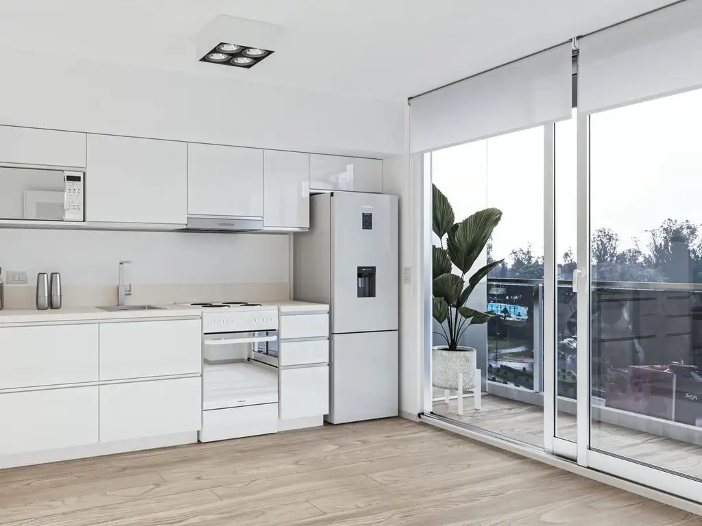 En la terraza se ubicará el área social del edificio, compuesta por un SUM completamente equipado con parrillero y cocina, provista de mobiliario bajo mesada y alacenas, además de heladera, microondas, anafe y termotanque. El espacio contará con mesas, sillas, pantalla LED y climatización frío/calor. El solárium estará desarrollado con deck de PVC y césped sintético.