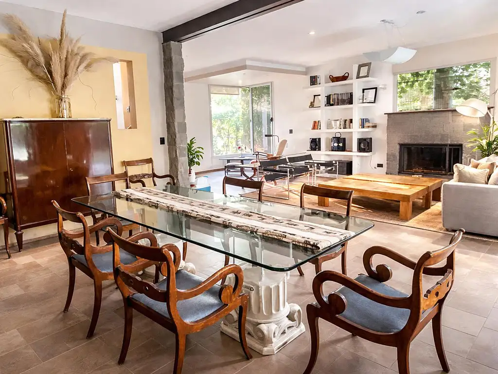 La PLANTA BAJA ofrece un recibidor que conecta con un escritorio a la izquierda, un toilette de visitas a la derecha, y un luminoso y amplio living comedor con hogar a leña y vistas al jardín. La cocina, con comedor diario, se complementa con un lavadero, dependencia de servicio con un baño con doble ingreso sirviendo de apoyo como baño de pileta.