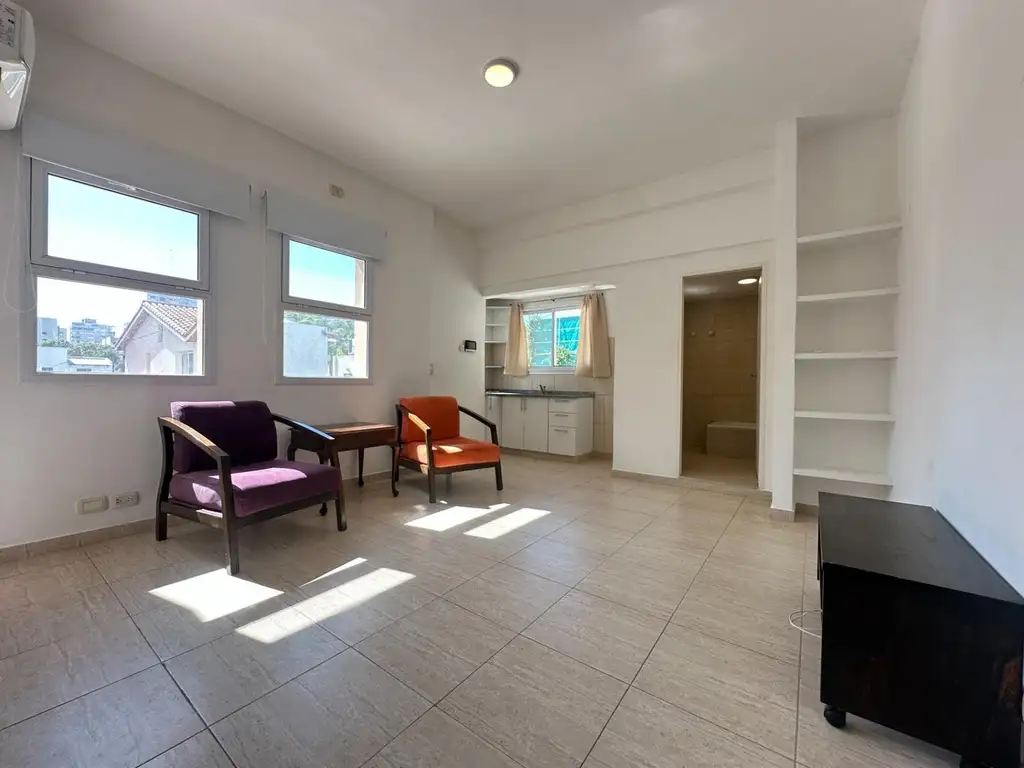 Monoambiente con Kitchinet, Baño completo, placard con su interior y balcon.