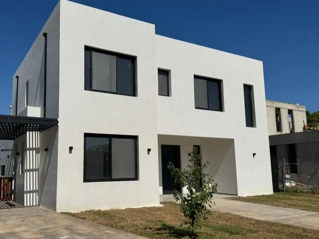 La propiedad cuenta con revestimiento exterior plástico impermeable y paredes interiores con terminación en yeso y pintura látex, pisos de porcelanato SLP de 80 x 160, aberturas de PVC foliado negro con DVH (doble vidrio hermético) y mosquiteros, calefacción por losa radiante sectorizada, caldera italiana Baxi y preinstalación de aire acondicionado en los ambientes principales; la cocina está equipada con mesada de Silestone, grifería monocomando FV, anafe a gas de acero inoxidable, horno eléctrico empotrado y muebles bajo mesada y alacenas; los baños presentan revestimiento en porcelanato, artefactos marca Roca, griferías FV y mesadas en Silestone; en el exterior se destaca una galería de losa con parrilla y mesada con bacha, pileta con amplio solárium, jardín parquizado con sistema de riego y estacionamiento con pérgola de hierro; la planta baja incluye living, comedor, cocina con playroom integrado, toilette, dormitorio y baño de servicio, lavadero, baño de pileta, depósito y dependencia de servicio con baño y toilette, mientras que la planta alta ofrece una suite principal con amplio baño y vestidor completo, una suite junior con baño y placard, dos cómodos dormitorios con placares de puertas corredizas, un baño completo compartido y una amplia terraza accesible con inmejorable vista al lago.