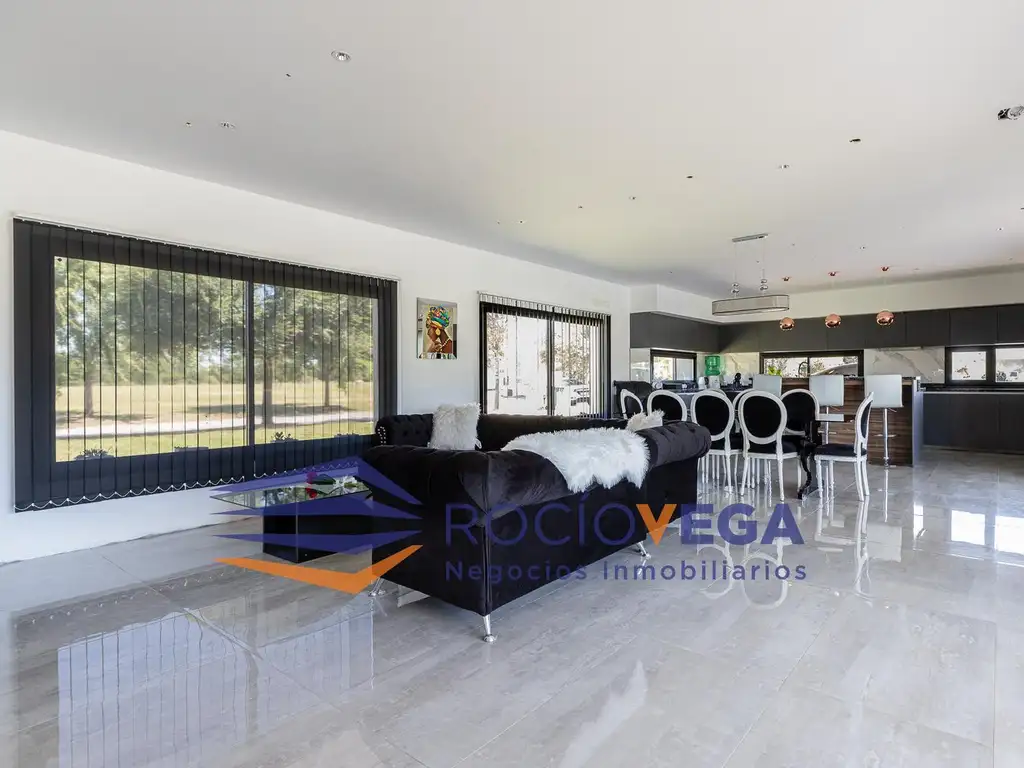Esta moderna propiedad, ubicada en Luján, ofrece un diseño de planta única y una vista inigualable al campo de golf.
