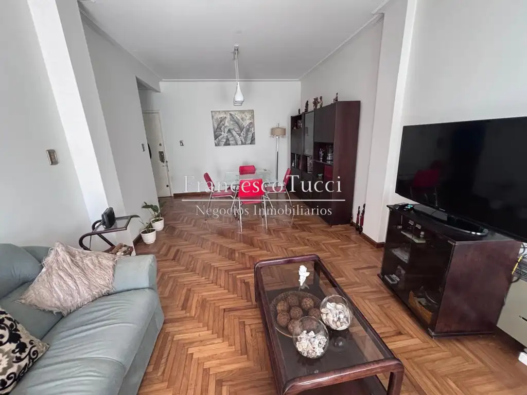 Gran living comedor con piso de madera, de excelente tamaño y salida al balcón