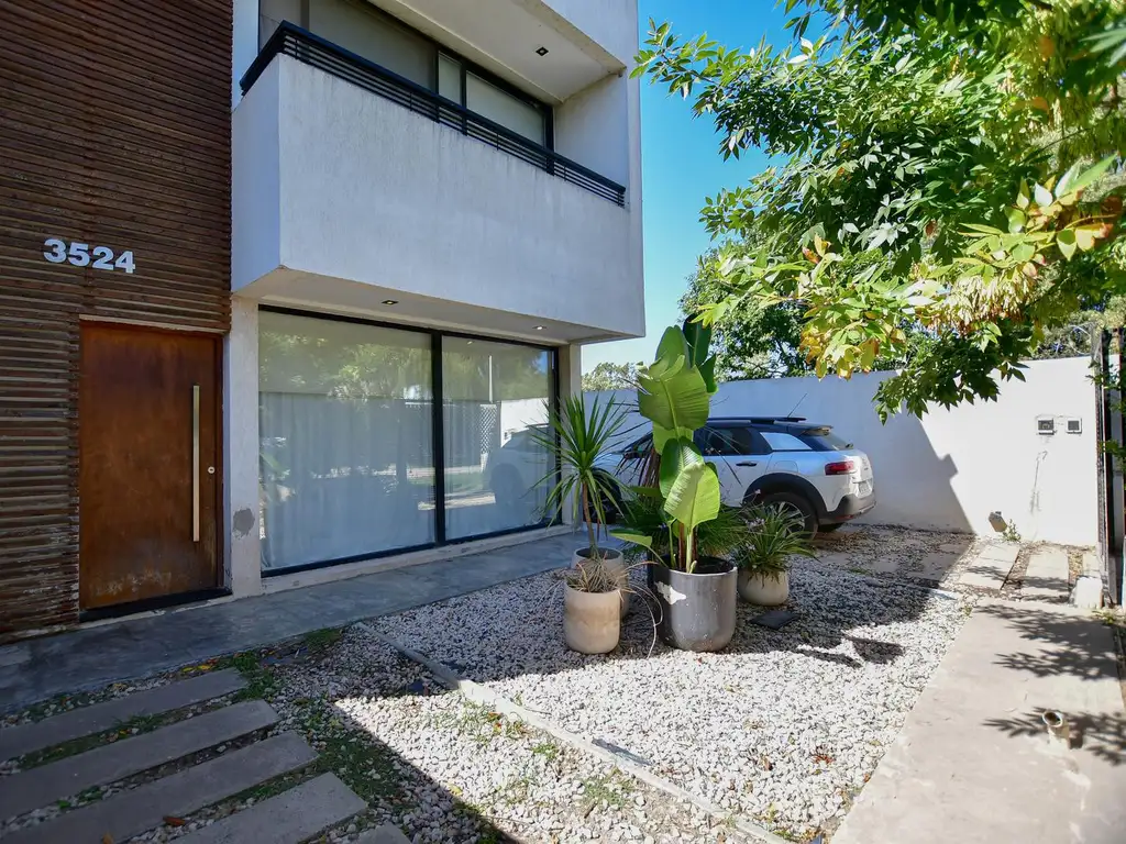 Al ingresar, nos recibe un imponente frente con detalles en madera y hormigón. El living-comedor es el corazón de la casa, con aberturas que aportan una sensación de amplitud única.
