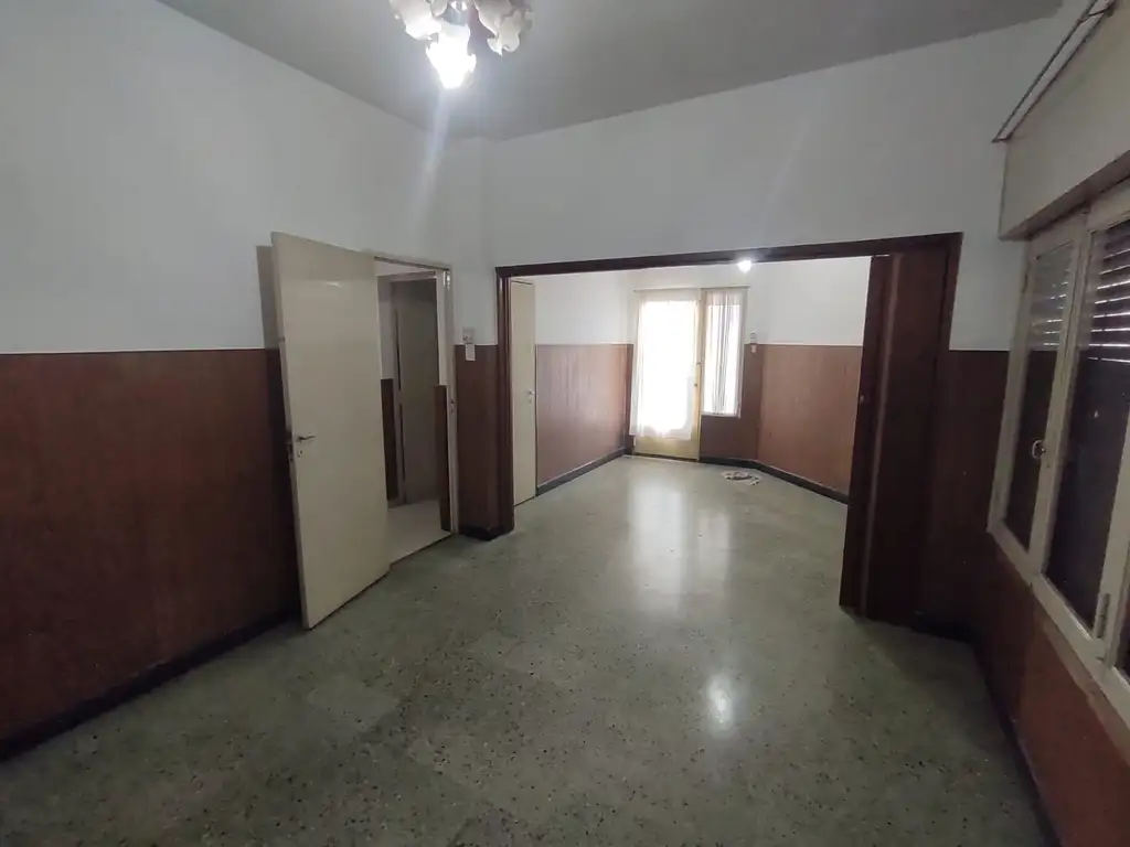 Ingreso a hall de recepción que conecta con amplio comedor, separado por puertas corredizas de madera. El ambiente cuenta con calefactor con salida al exterior, ventilador de techo y ventanas con hojas de madera, persianas de enrollar y rejas.