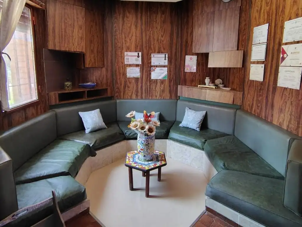 La propiedad cuenta con acceso directo desde la calle. Al ingresar, se encuentra un living amplio en forma de U, con sillones empotrados que generan un espacio cómodo y funcional para el día a día.