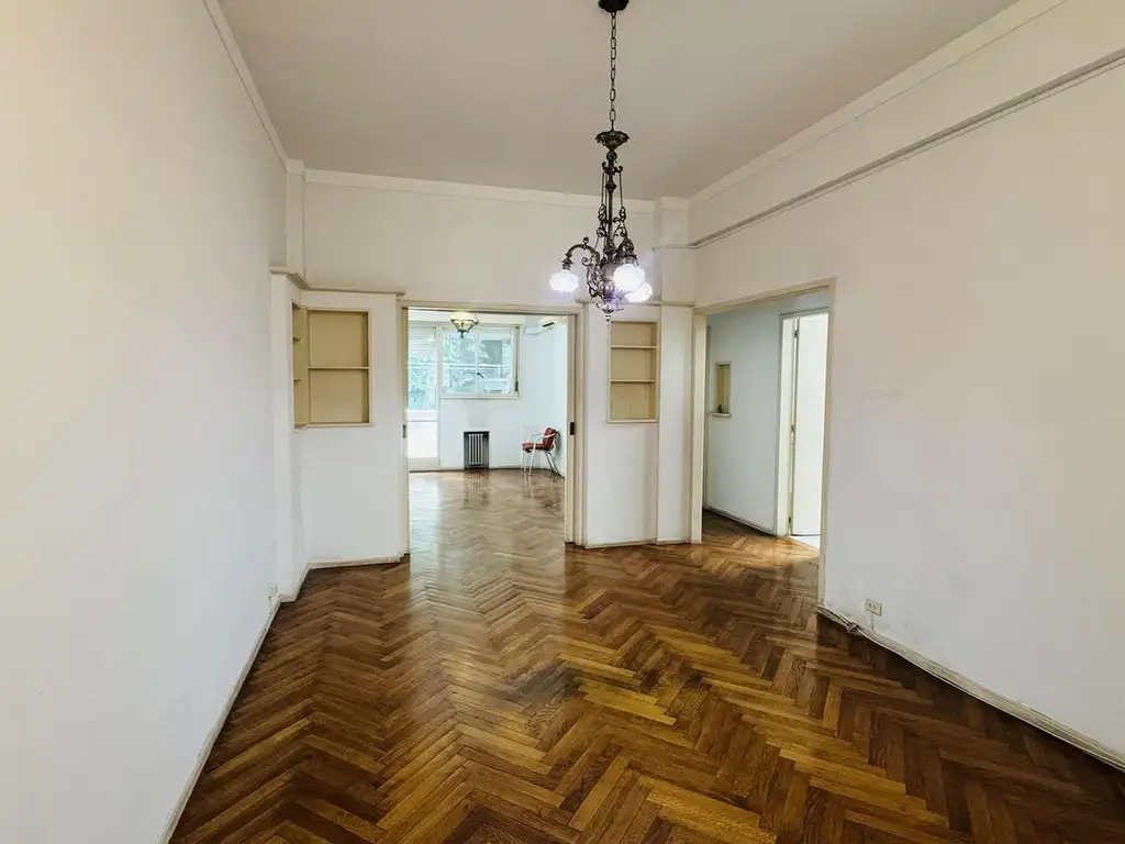 En primero piso se encuentra un luminoso living comedor. Cocina separada. Dos habitaciones con placard. Baño completo. Dependencia con su baño. Lavadero. Aire acondicionado.
