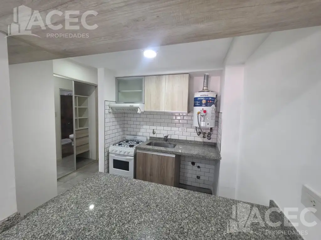El espacio interior es un monoambiente con cocina semi-integrada, equipada con alacenas y bajo mesada.Cocina de 4 hornallas (marca Escorial.) extractor, termotanque ( marca Señorial) . Barra divisoria con semíl mármol con lugar de guardado.
