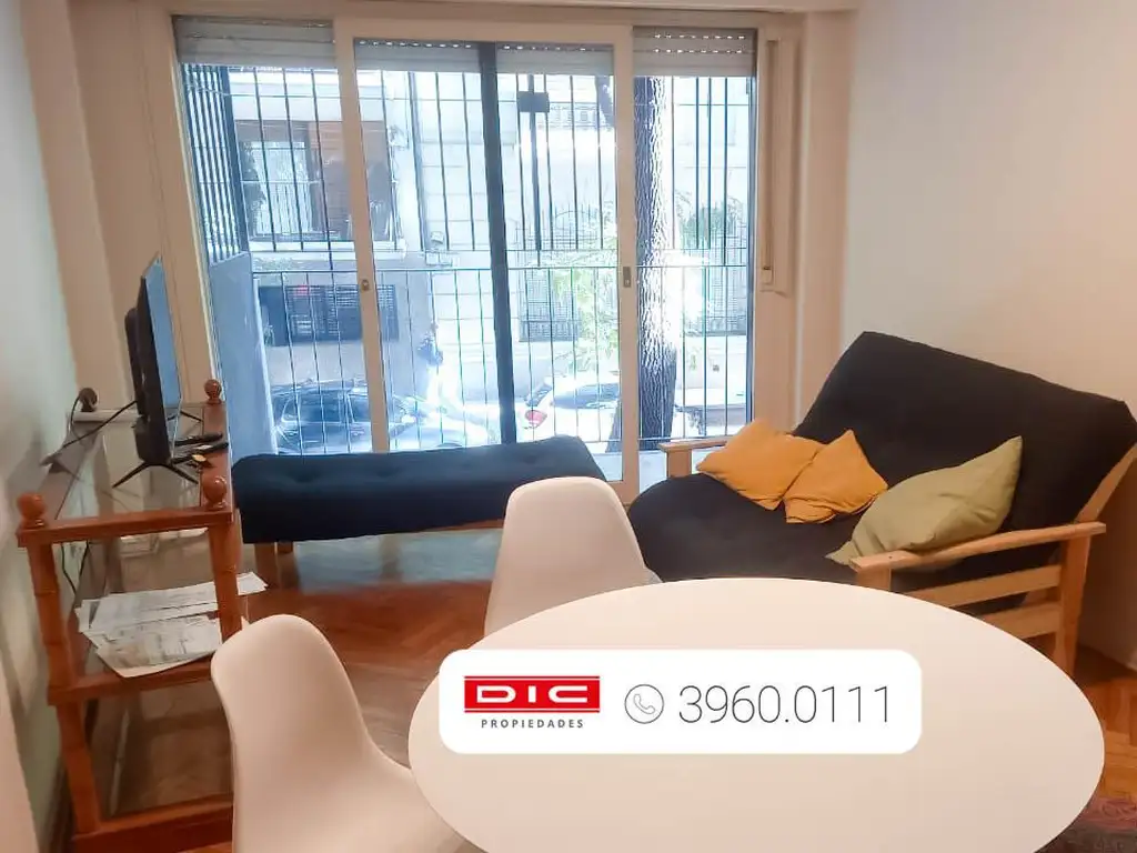 Departamento de tres ambientes amoblado, al frente con balcón.