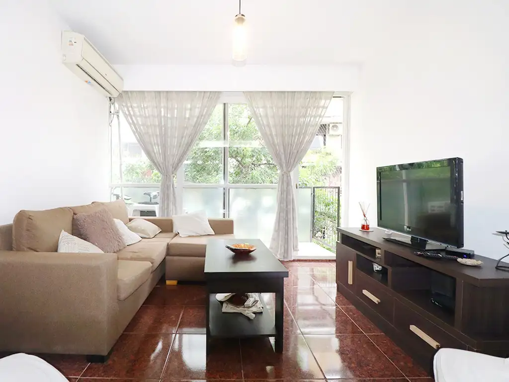 Tercer dormitorio muy luminoso, placar, aire acondicionado, ventana al contrafrente, pisos de parquet.